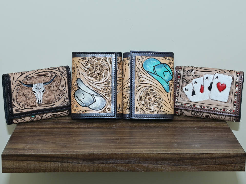 Tipo:Western Tooled Cuero Tri-Fold Hombres Carteras