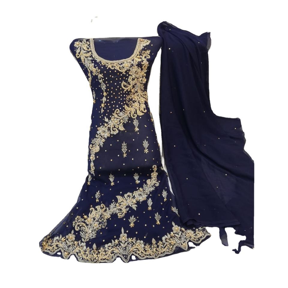 Vestido paquistaní de nuevo trabajo manual, de color azul, oferta internacional