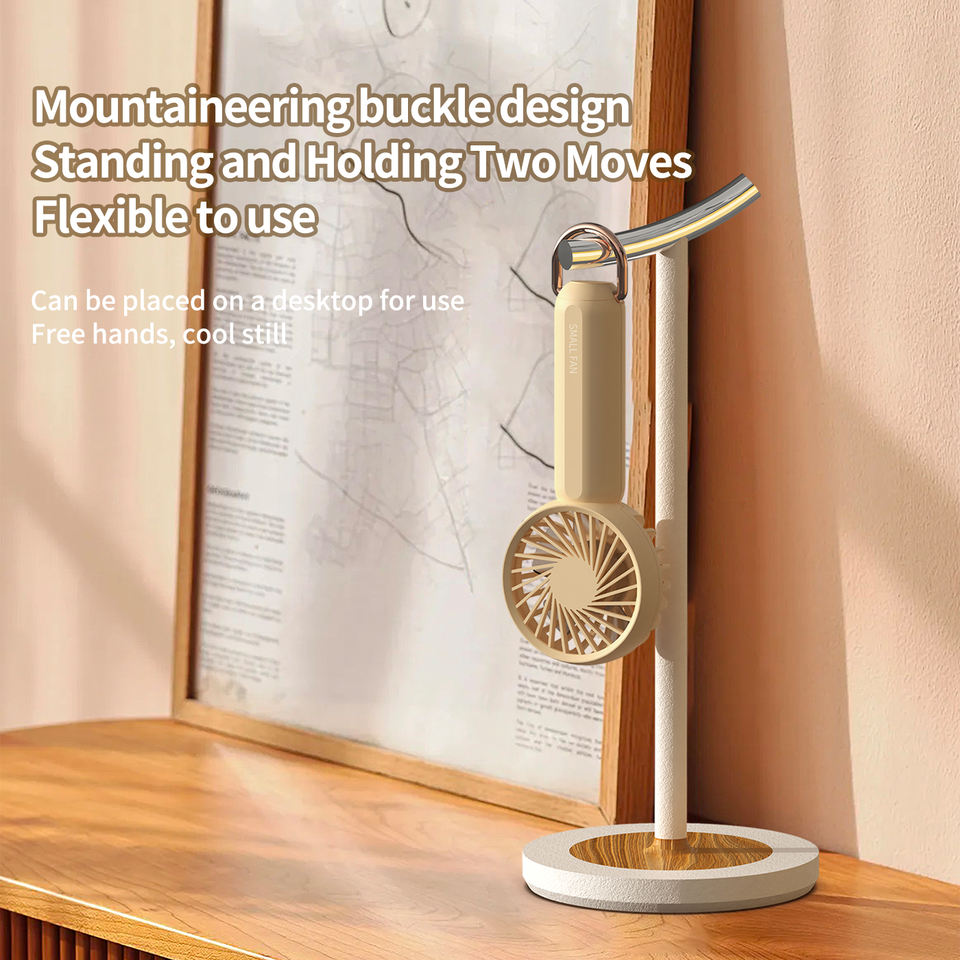Nuevo Mini Ventilador Portátil Recargable por USB con Mosquetón para Exteriores, Base Plegable, Luz y Alta Potencia