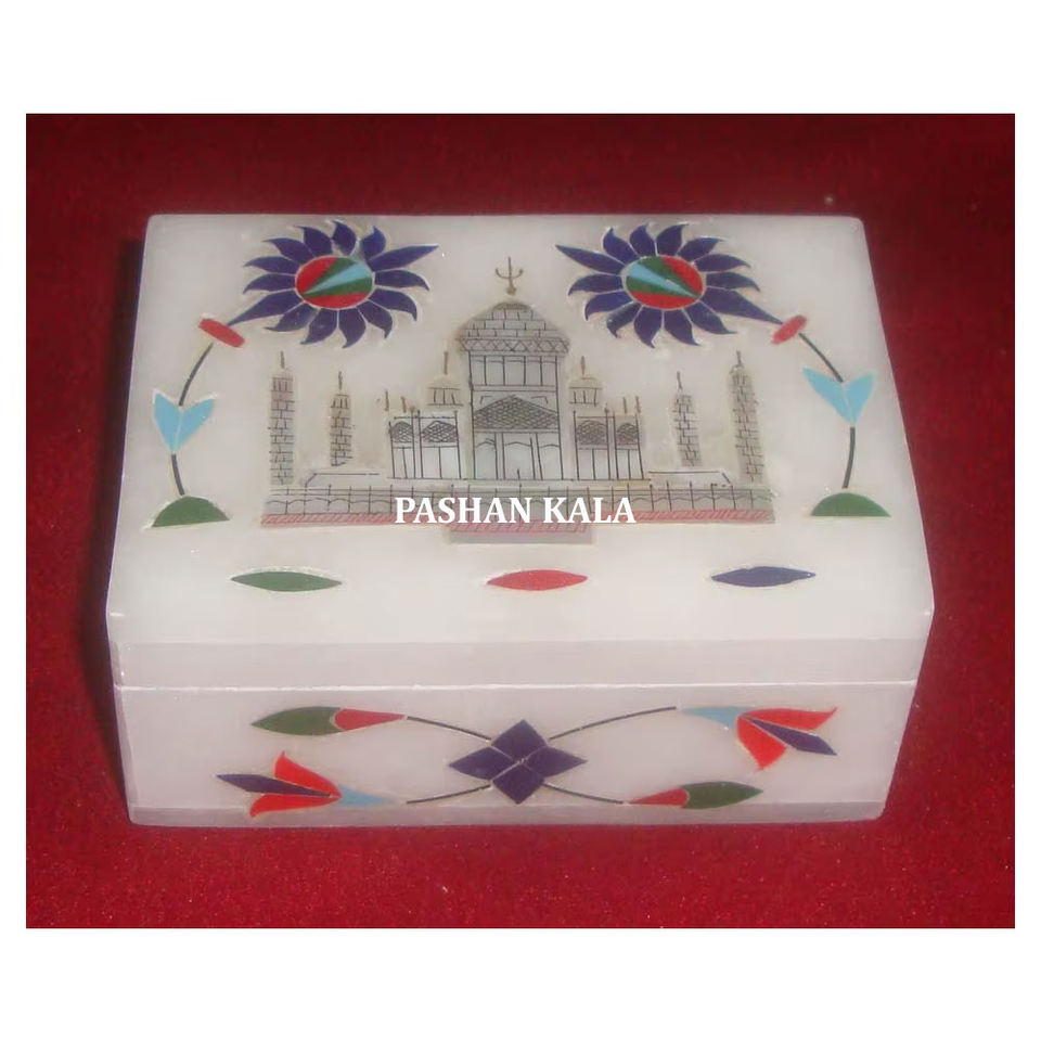 Nuevo diseño hecho a mano, caja de joyería con incrustaciones de mármol blanco, forma Rectangular, multicolor, utilizado para decoración del hogar y fines de regalo