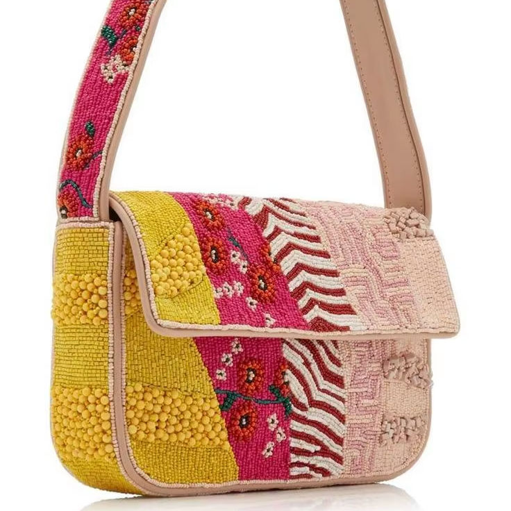 Nuevo Bolso de Hombro de Patchwork Hecho a Mano con Cuentas, Bolso de Mano de Diseñador con Cuentas de Vidrio Bordadas para Mujer, Bolsos de Moda de Boutique Premium