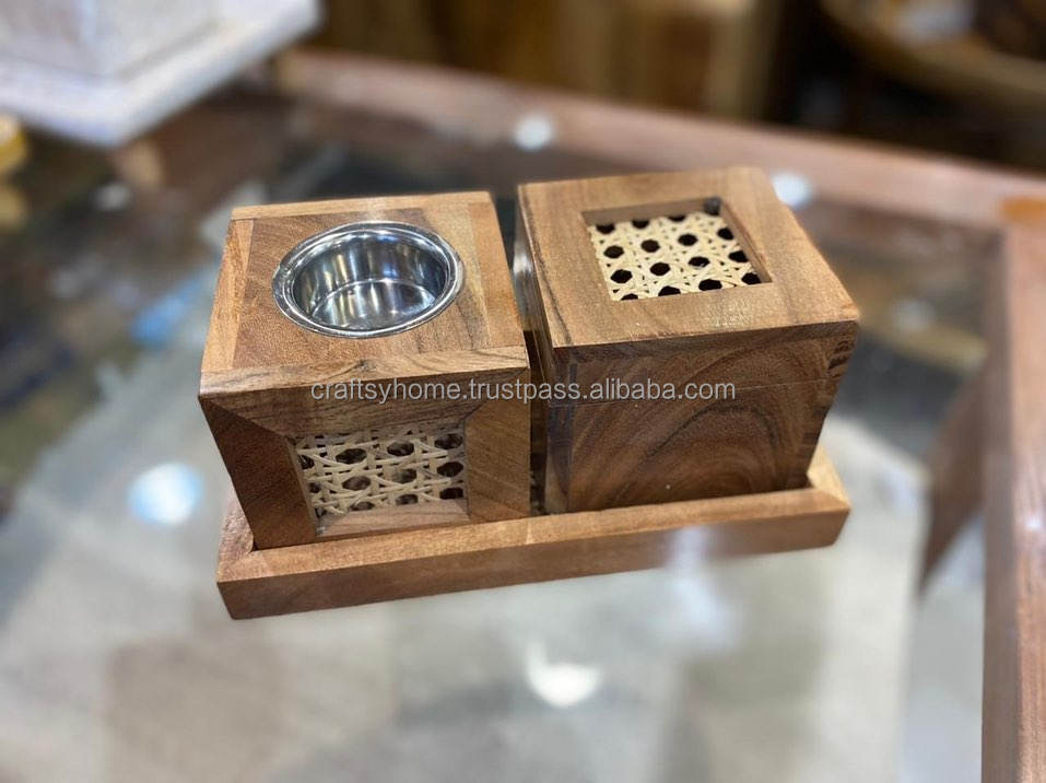 Nuevo juego de quemador de incienso hecho a mano de madera y ratán, juego completo de quemador de Bhakhoor con caja a un precio muy económico.