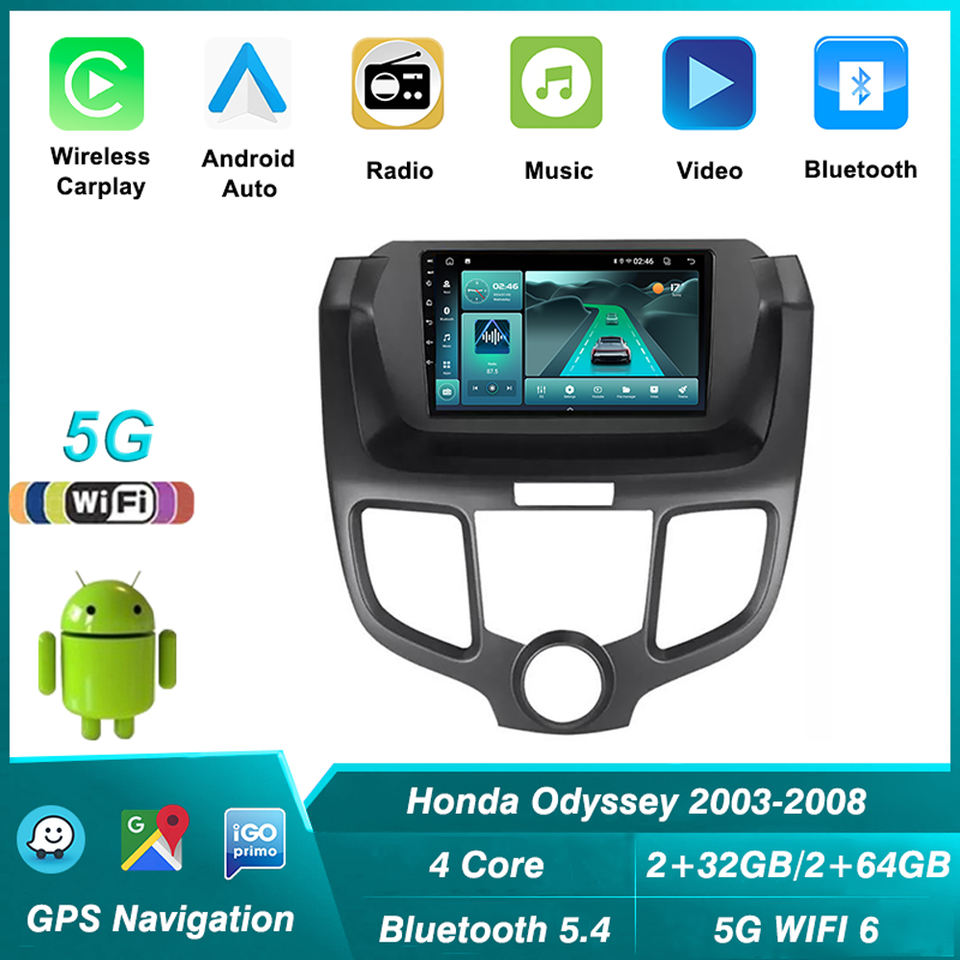 Nueva unidad principal Auto Radio 2 Din Android Car Radio para Honda Odyssey 2003-2008 DVD Navegación Multimedia Estéreo 5G-WIFI Car Player