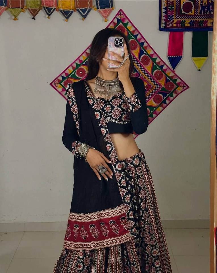Nombre del producto:Lehenga y Choli Dupatta Impresión de rayón y Kodi trabajo de encaje