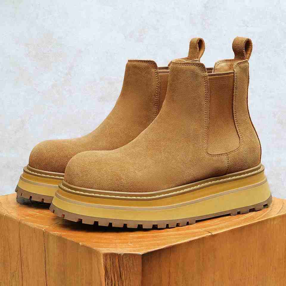 Nuevas Botas de Alta Calidad para Hombre, de Gamuza y Cuero Genuino, con Suela Gruesa de 5CM, Botines con Textura Premium