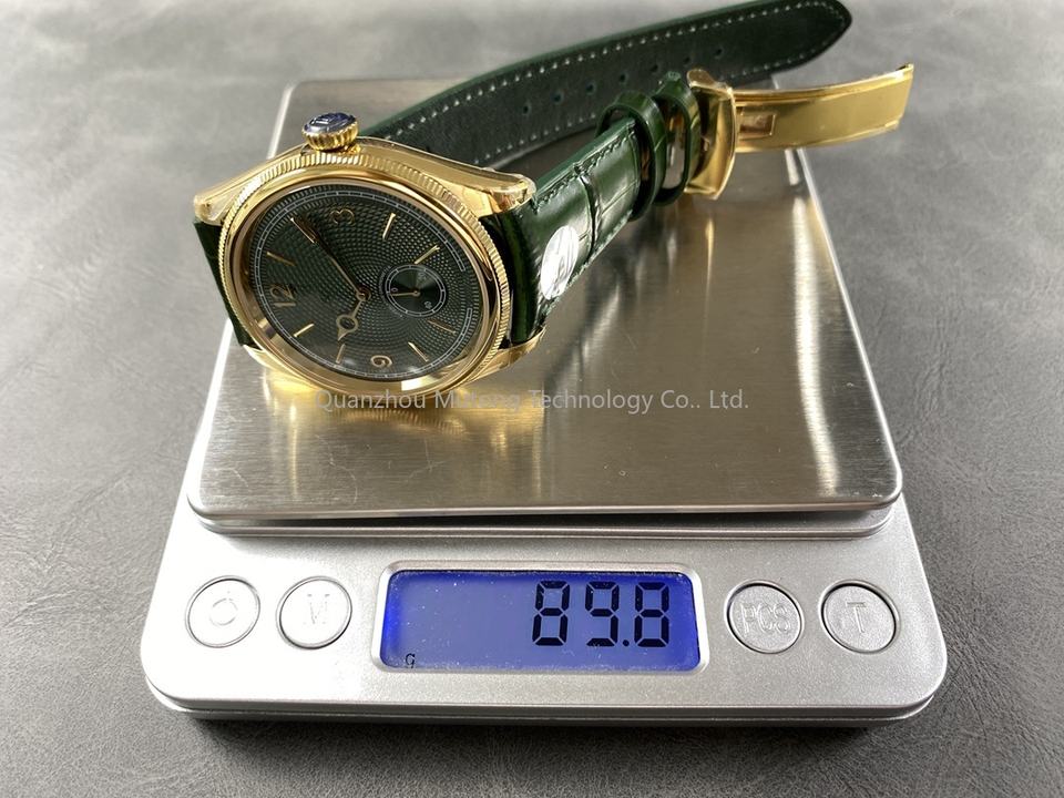 Nuevo Reloj Mecánico de Alta Calidad de 39 mm, Modelo 1908, Correa de Goma Verde, Acero 904, Movimiento Cal.7140, Resistente al Agua hasta 50 Bares