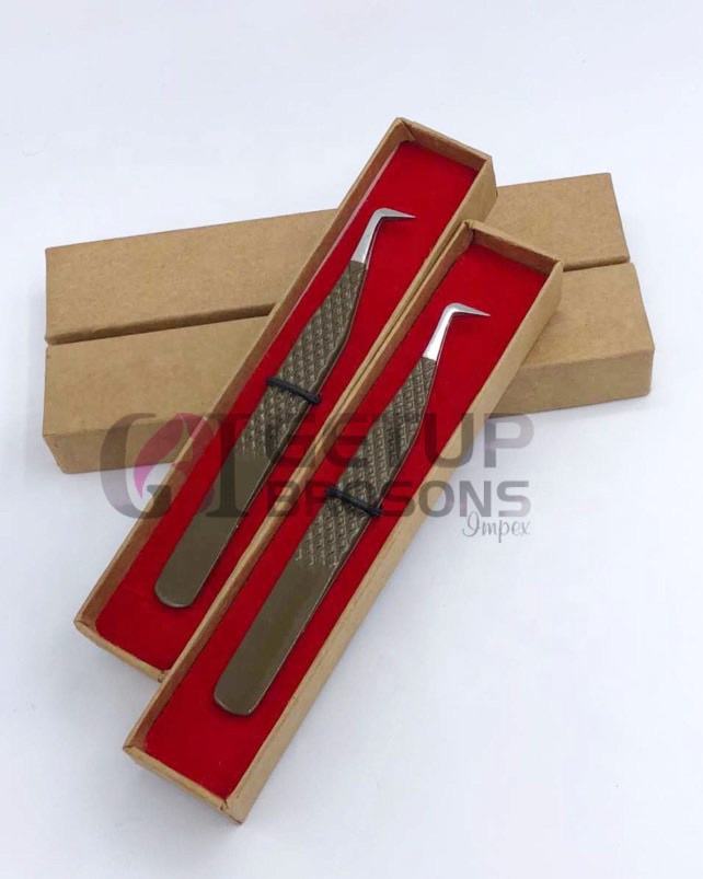 Pinzas para Pestañas GETUP BROSONS IMPEX Nuevas de Alta Calidad con Recubrimiento en Polvo Marrón, Punta Plateada de 90 Grados y Agarre de Diamante