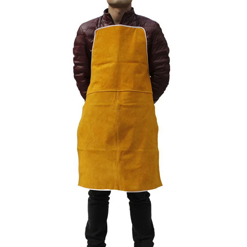 Delantales de alta calidad para uso en la cocina con soldadura de cuero de vaca, delantal de seguridad laboral con bolsillos, delantales de uso diario