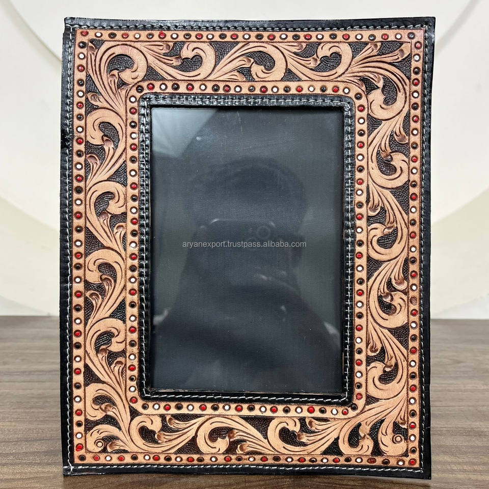 Nombre del producto:Mano Tooled cuero genuino foto marco de fotos