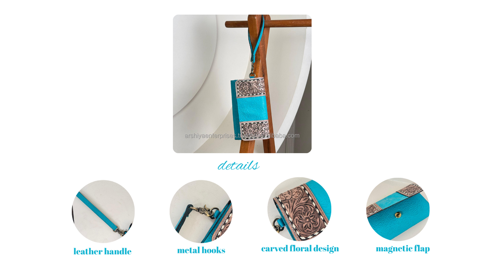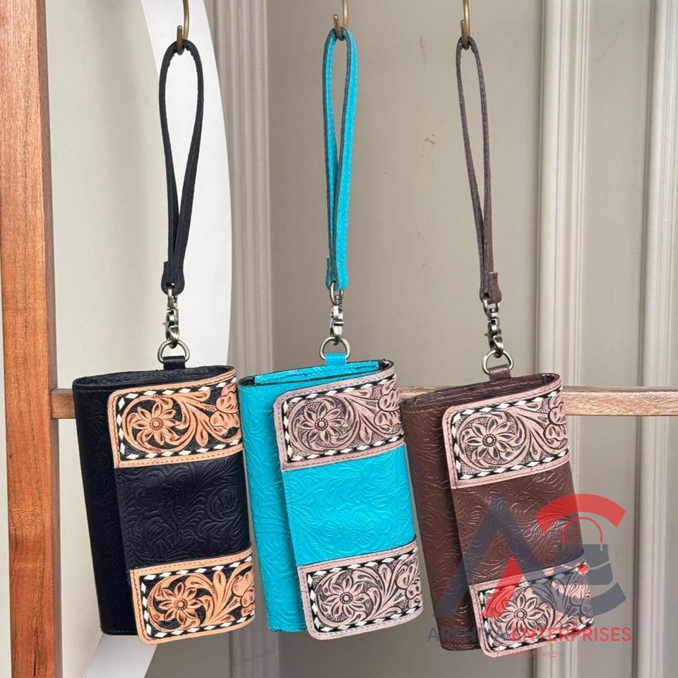 Cartera de cuero con herramientas Western Hand Tooled