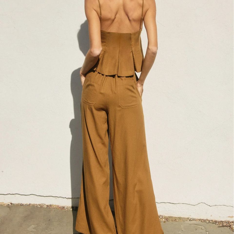 Nuevo Conjunto de Pantalones Anchos de Lino con Bolsillos con Cordón de Alta Calidad, Diseño Personalizado, Traje de 2 Piezas para Mujer