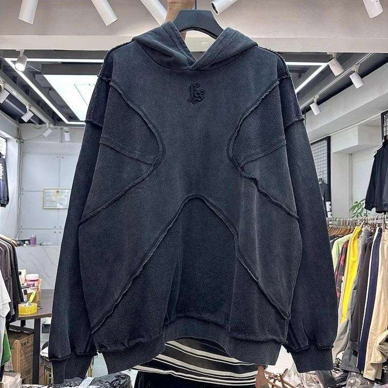 Nuevas sudaderas con capucha de alta calidad, bordadas, con diseño de parche de pedrería, efecto desgastado, lavado a la arena, con borde sin rematar, 100% algodón.