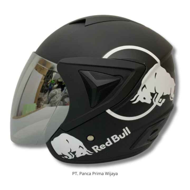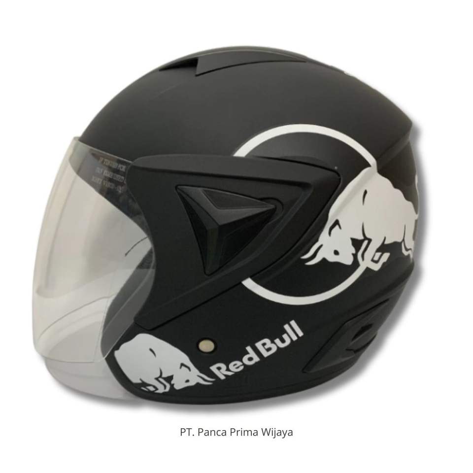 Nuevo Casco de Motocicleta Abierto JP13 RedBul de Alta Calidad | Negro Mate Blanco | Certificado por SNI | Visera Ligera de Espuma ABS