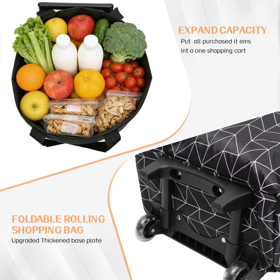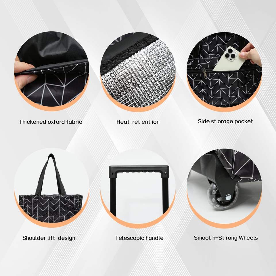 Nuevo Carrito de Compras Plegable de Dos Ruedas, Ligero y de Alta Calidad, con Bolsa Refrigerante, Cierre de Cremallera, Asa de Cinta de PP y Poliéster