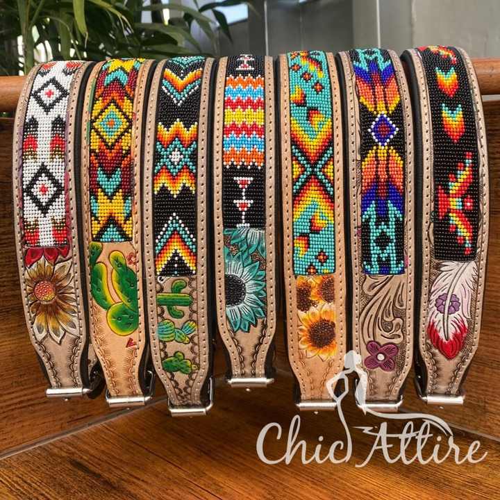 Product name:Hand Tooled Leather Beaded Dog Collar