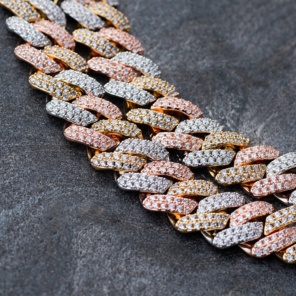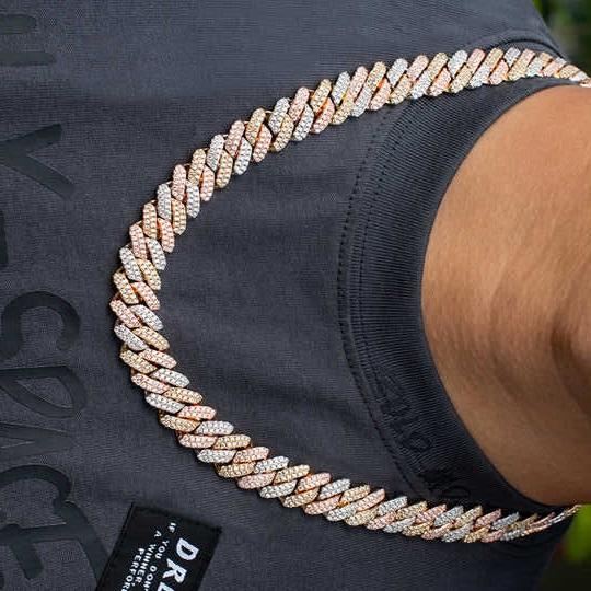 Nuevo DISEÑO DE Hip Hop Moissanite diamante enlace cadena cubana Iced Out 925 Plata Rosa chapado en oro cadena cubana para hombres