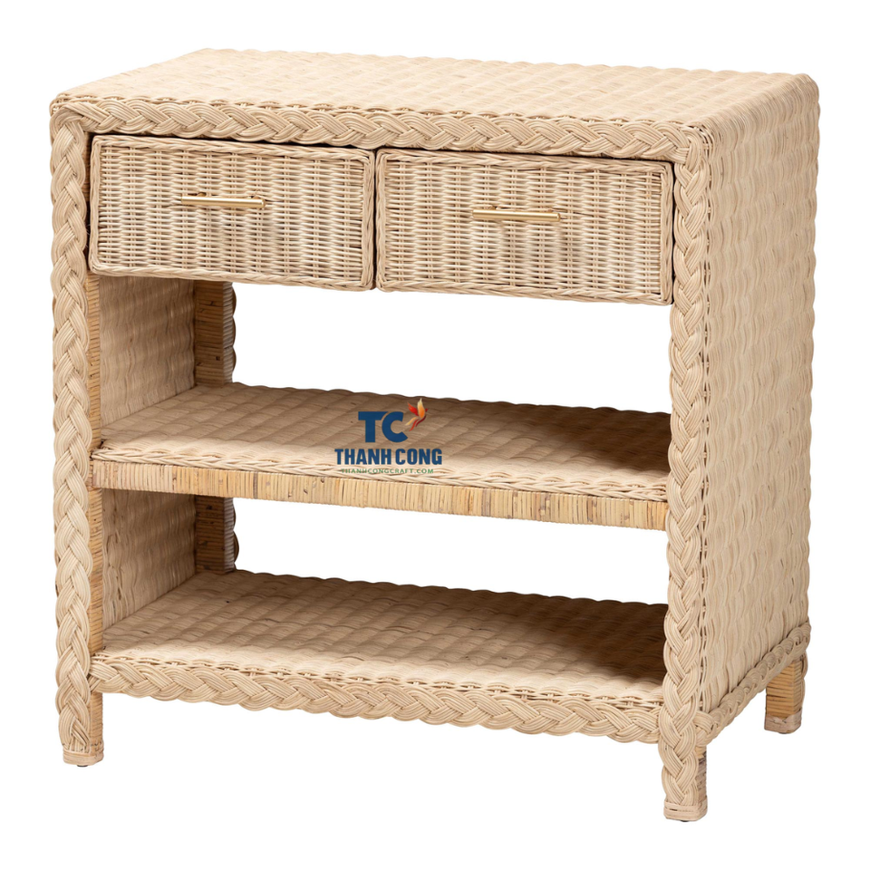 Nuevo diseño caliente ratán 2 cajones consola mesa al por mayor mesas de centro para muebles de sala de estar hecho en Vietnam