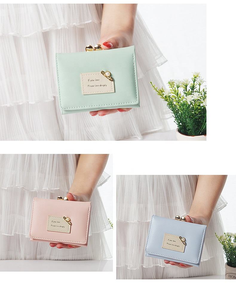 Nuevo Diseño Moderno, Monedero Corto y Simple con Perlas, Monedero Triple para Mujer, Multifuncional, Tarjetero, Monedero para Niñas y Mujeres