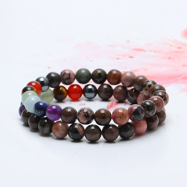 Nuevo caliente Natural Rodan piedra mármol patrón rojo pulsera de cuentas 7 Chakra Yoga pulsera