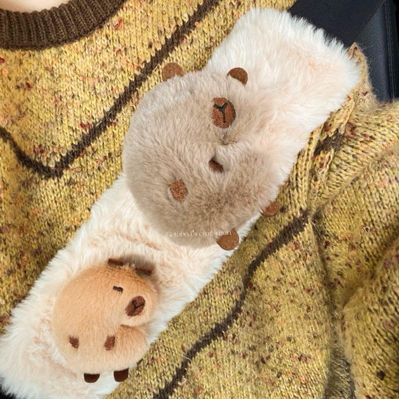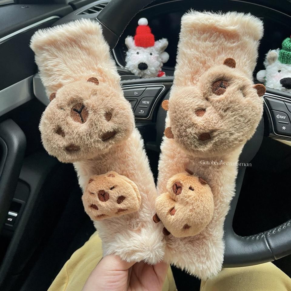 Nueva imitación de piel de conejo, funda Universal para cinturón de seguridad de coche, dibujos animados bonitos, capybara, felpa suave, hombrera de seguridad automática para niños y mujeres