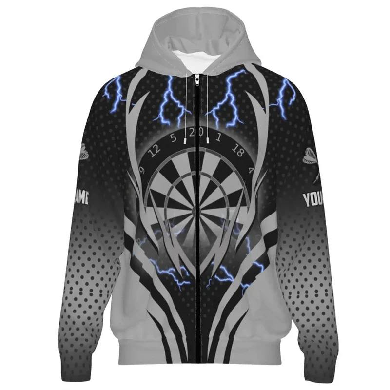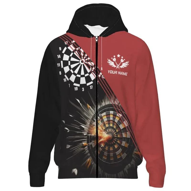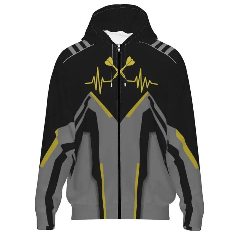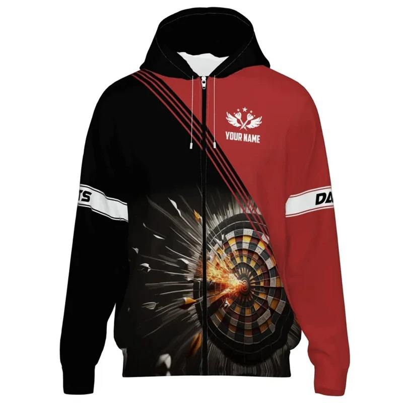 Sudadera con capucha y cremallera de dardo impresa en 3D para hombre, Jersey deportivo informal de gran tamaño con nombre personalizado, impermeable, antiretráctil, estilo callejero largo