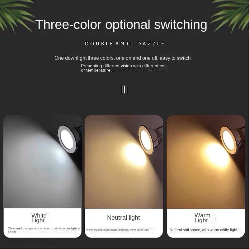 Lámpara de techo delgada de tres colores regulable para interiores, luz descendente empotrada de aluminio de, nuevo foco LED de 80 Lux, 12W de potencia IP65