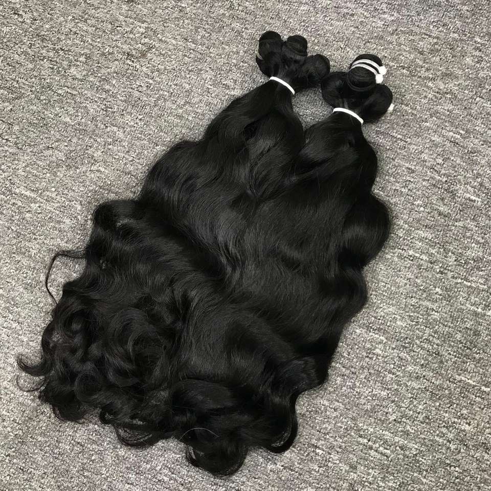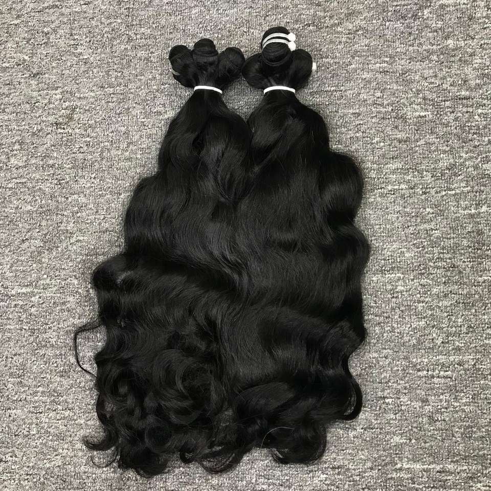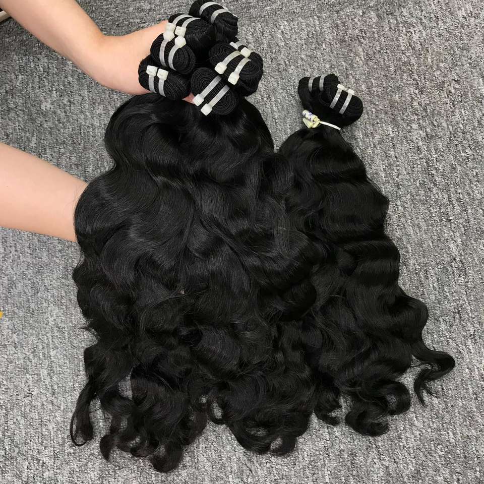 Nueva instalación Extensiones de cabello Remy Virgen sin procesar Onda natural Color negro Cutícula alineada Máquina de doble estiramiento Tipo de trama Cabello