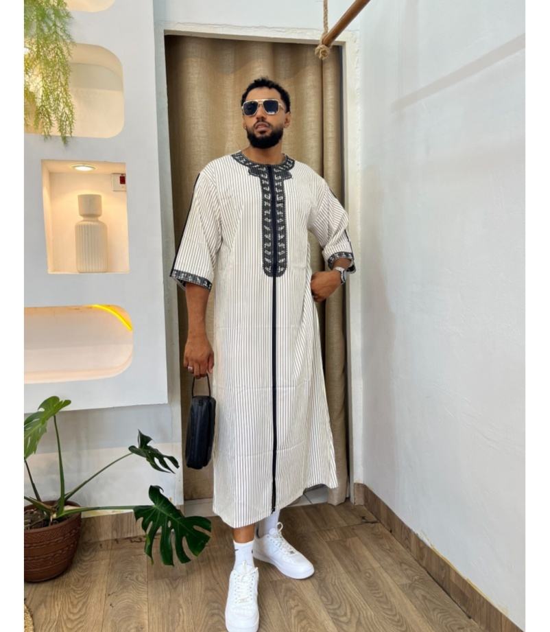 Nueva ropa islámica hombres bata Kaftan musulmán hombre marroquí Casual vestido largo árabe rayas bata Oriente Medio traje nacional Bata