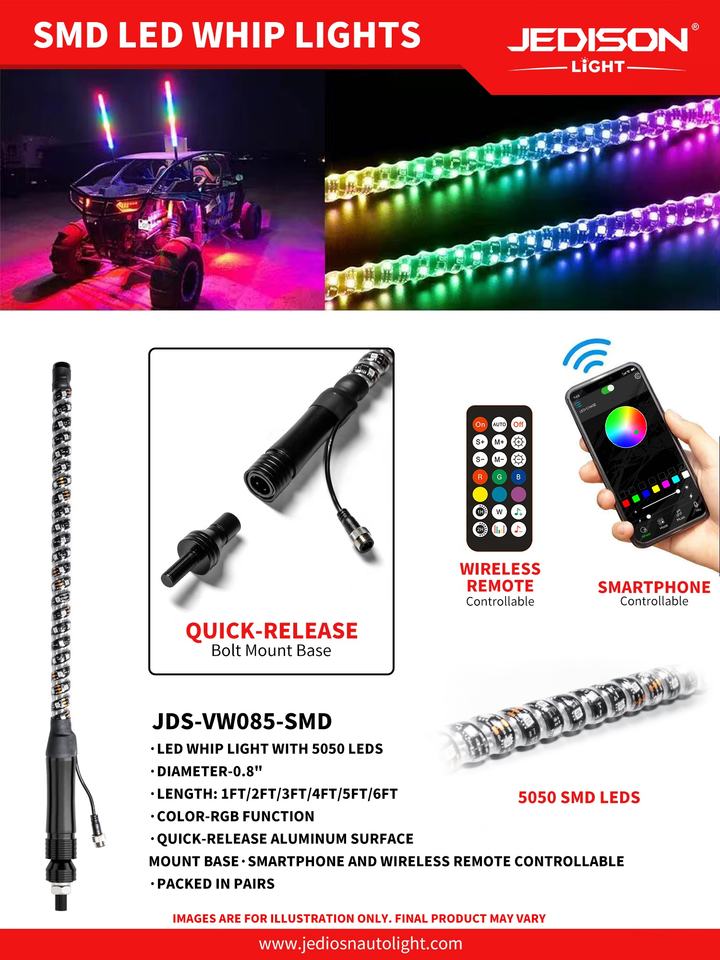 Dimensión:Luz LED tipo látigo de 0.8 pulgadas de diámetro