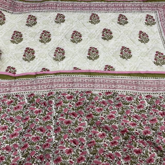 Nueva Colcha Reversible Estilo Jaipuri con Estampado en Bloques, 100% Algodón, Diseño Floral Hecho a Mano, Lavable, Estilo Simple para Hotel y Hogar
