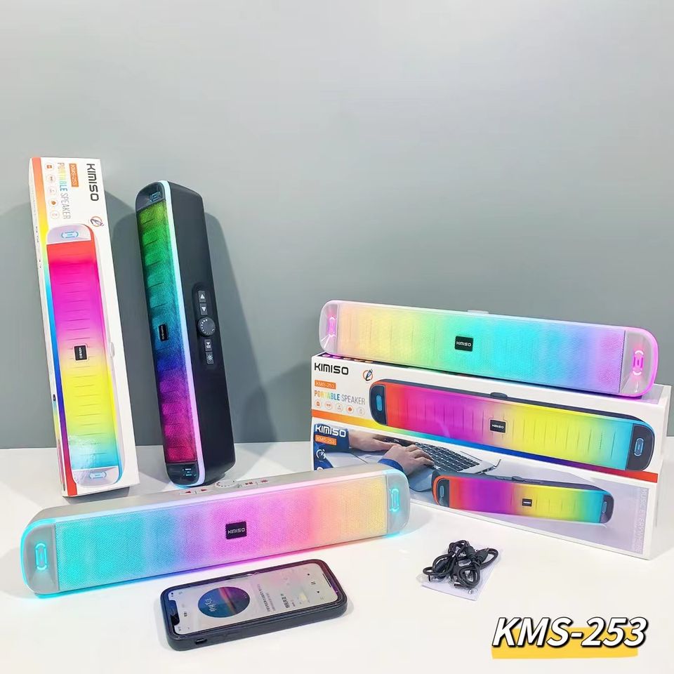 Nuevo Altavoz KMS-253 RGB Glitz Light para Computadora, Subwoofer Inalámbrico con Bluetooth, Tarjeta de Sonido, Altavoz de Barra Larga para Escritorio