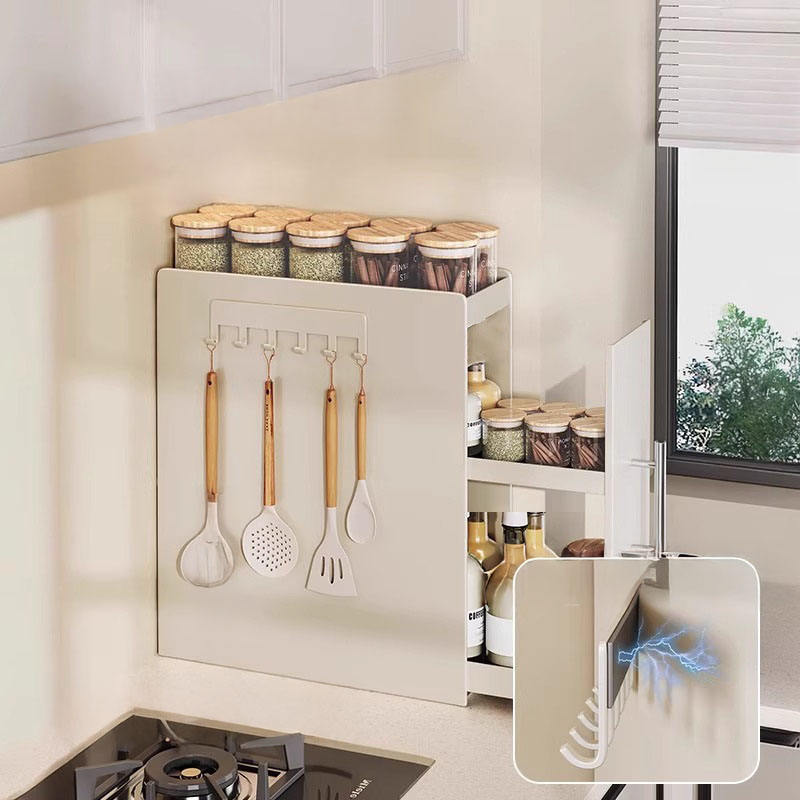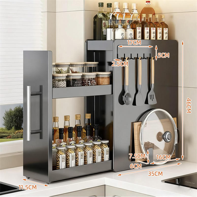Nuevo Estante Delgado para Especias de Cocina - Organizador Extraíble Multicapa Antipolvo para Aceite, Sal, Salsas y Vinagre