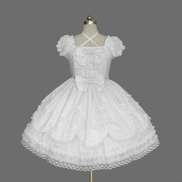 Nuevo Vestido Lolita de Encaje Estilo Corte, con Mangas Cortas, Estilo Gótico, para Fiesta de Disfraces, en Venta