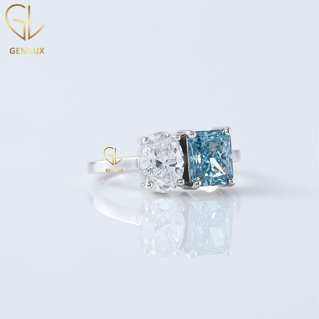 Nuevo último diseño Toi Et Moi Ring, 2CT White Oval & 2CT Blue Radiant Cut Labgrown Diamond Anillo de compromiso para mujer