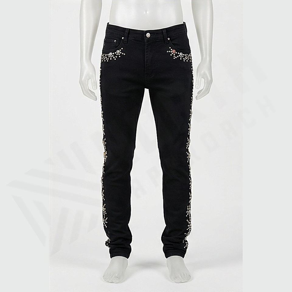 Pantalones Vaqueros de Mezclilla de Alta Calidad para Hombre, Estilo Urbano con Pedrería, Cintura Media, Lavados, Holgados, Estilo Hip Hop, Venta al por Mayor