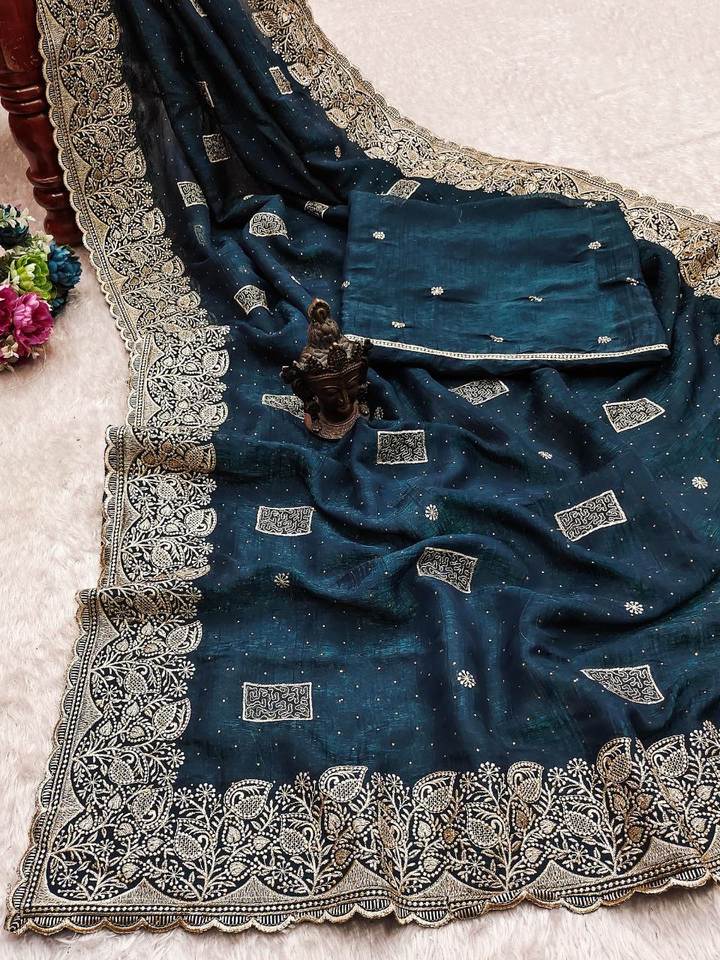 Nuevo Lanzamiento, Sari de Seda Georgette con Diseño de Diseñador, Adorno de Piedras Multicolores, Corte de Cuatro Lados, Especial para Karva Chauth, Ropa India Elegante