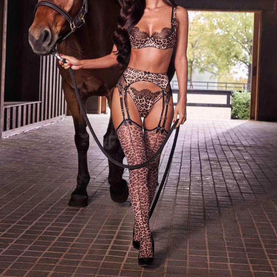 Nueva Lencería Íntima con Estampado de Leopardo, Malla Transparente con Encaje y Tirantes Cruzados en la Espalda, Medias, Lencería para Mujer, Camisón