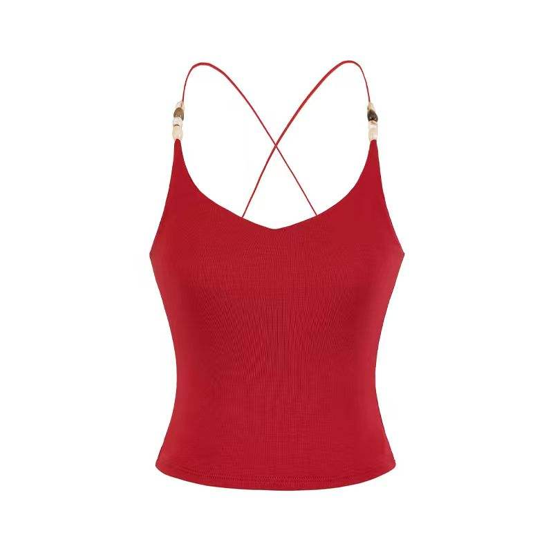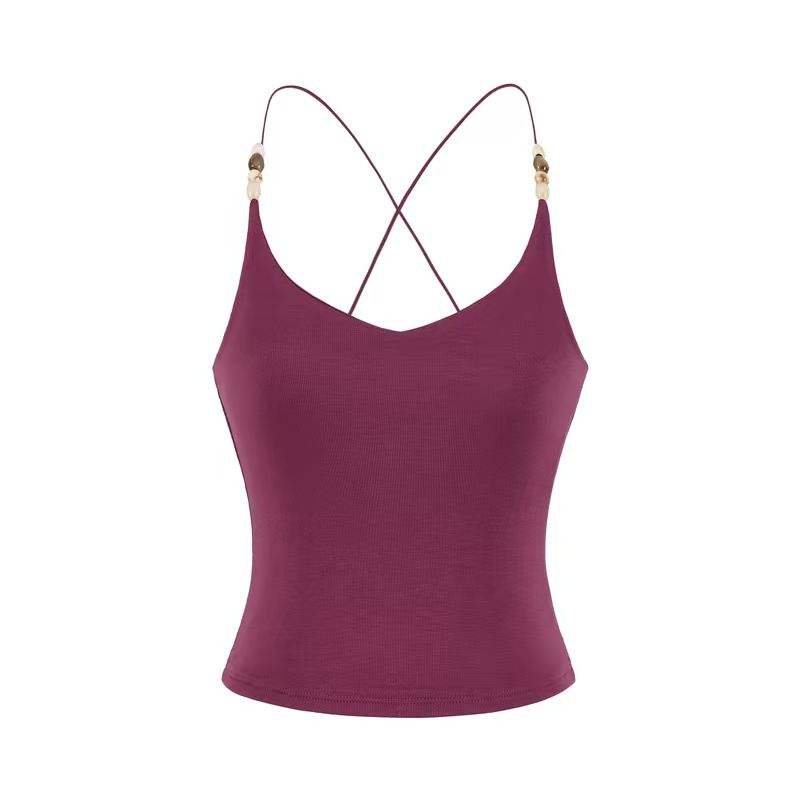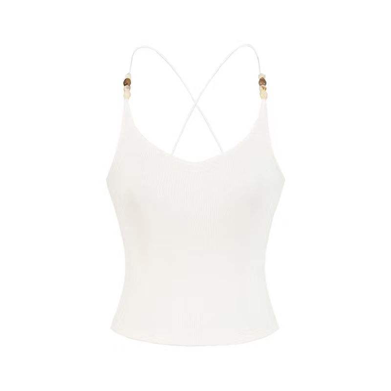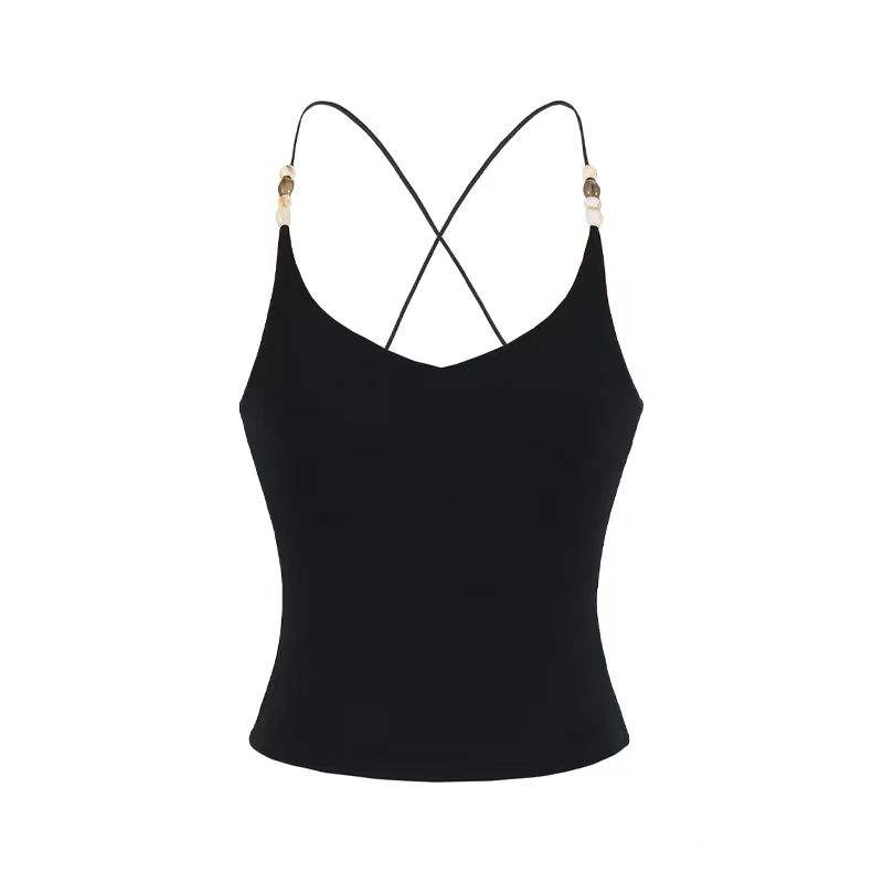 Nuevo Top Corto Ligero con Cuentas y Espalda Cruzada - Bralette de Encaje Elástico en Cuatro Direcciones con Ajuste Delgado y Cintura Ceñida
