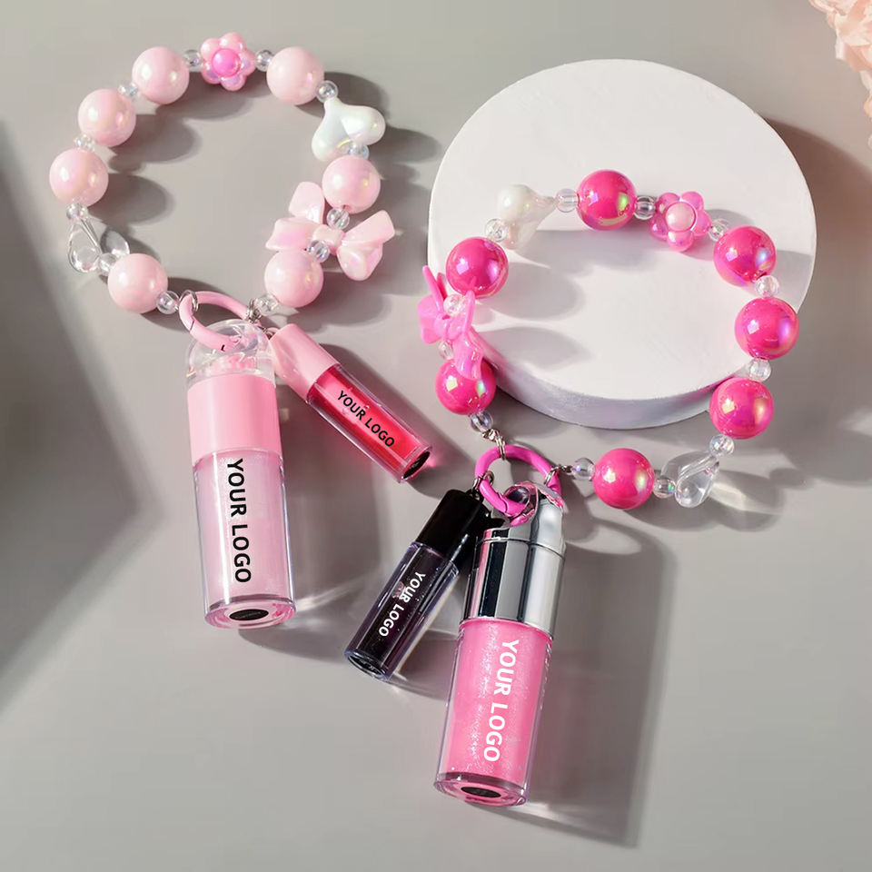 Nuevo Brillo Labial con Etiqueta Privada, Colgante de Pulsera con Perla y Lazo, Aceite Labial Hidratante que Cambia de Color