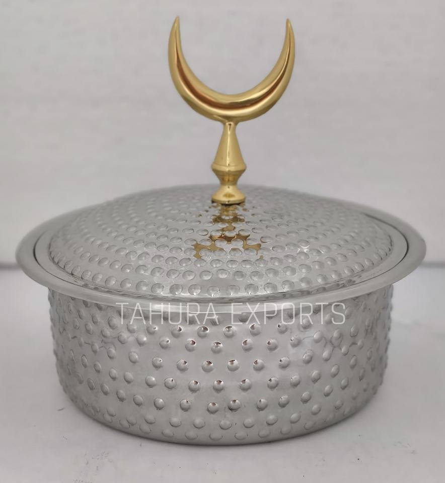 New Look Metal Hotpot Cazuela niquelada en el mejor calentador de acero inoxidable Premium en forma redonda para calentar alimentos de mesa
