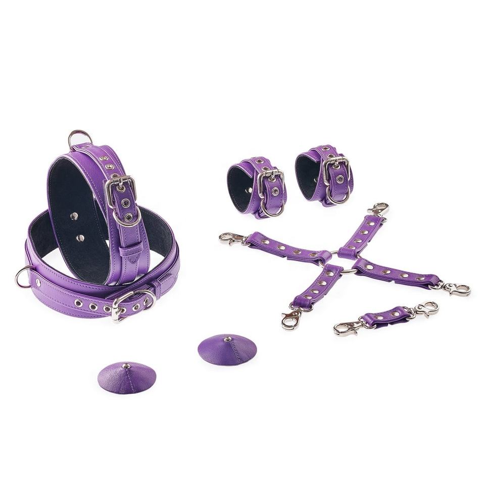 Nuevo Set BDSM Lux, Morado, Kit, Bondage, Equipo de Sumisión, Esposas, Ataduras para Muslos, Pezoneras TFY-0019
