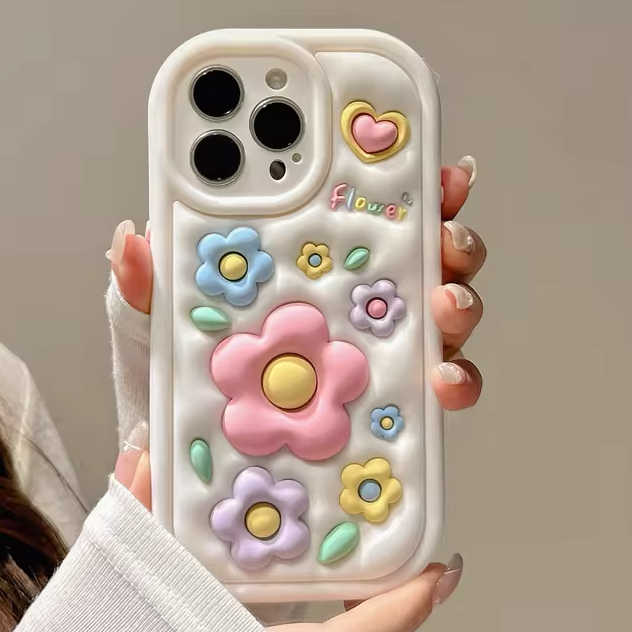 Nuevo lujo 3D color flor niña corazón silicona suave teléfono caso anticaída para iPhone 11 12 13 14 15 Pro Max