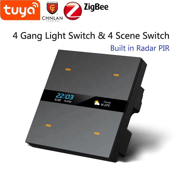 Nuevo Mini Panel de Control M8 Pro Zigbee Tuya con Sensor de Movimiento PIR, Interruptor de Luz de 4 Canales, Interruptor de Escena, Pantalla de Hora, Calendario y Clima