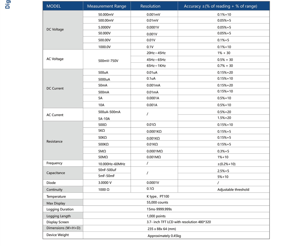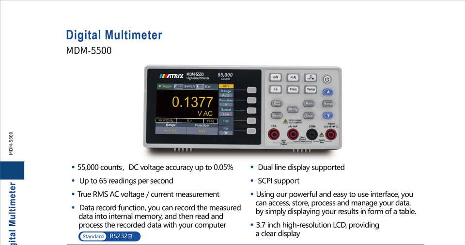 MATRIX MDM5500 Multímetro digital de escritorio Instrumento de Medición Universal de alta precisión SCPI OEM 55.000 recuentos TFT LCD de 3,7 pulgadas