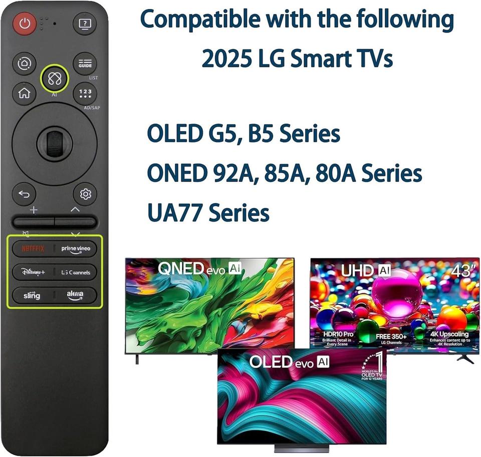 Nuevo Control Remoto de Voz y Puntero Inteligente MR25GA de Repuesto para Televisores LG Smart UHD OLED QNED NanoCell Series 2019-2025