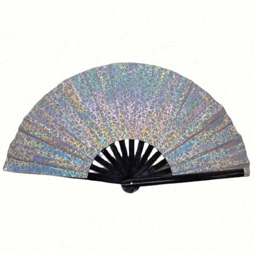 Nuevo Abanico de Bambú Iridiscente Láser Reflectante con Técnicas de Tallado para Festivales, Material Fantasía