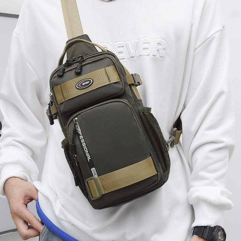 Nueva bolsa de nailon a la moda para hombre, mochila de gran capacidad, bandolera multifunción para exteriores, impermeable, con cremallera, bolso de un solo hombro