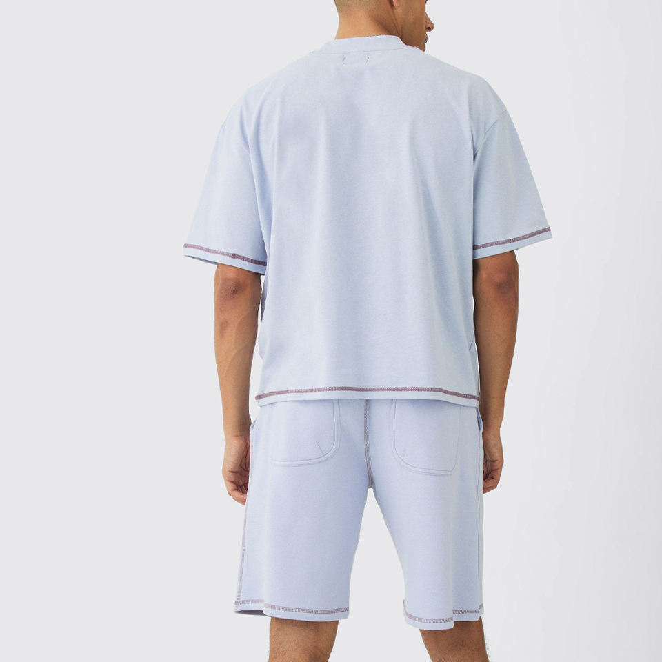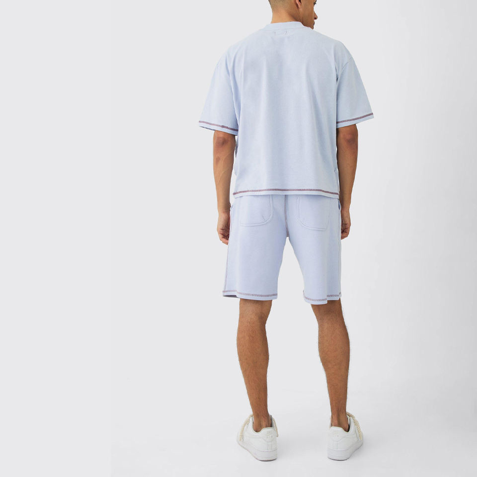 Conjunto de camisetas de media manga de alta calidad para hombre, conjunto de pantalones cortos con logotipo personalizable, bolsillo frontal con costuras en contraste impresas transpirables
