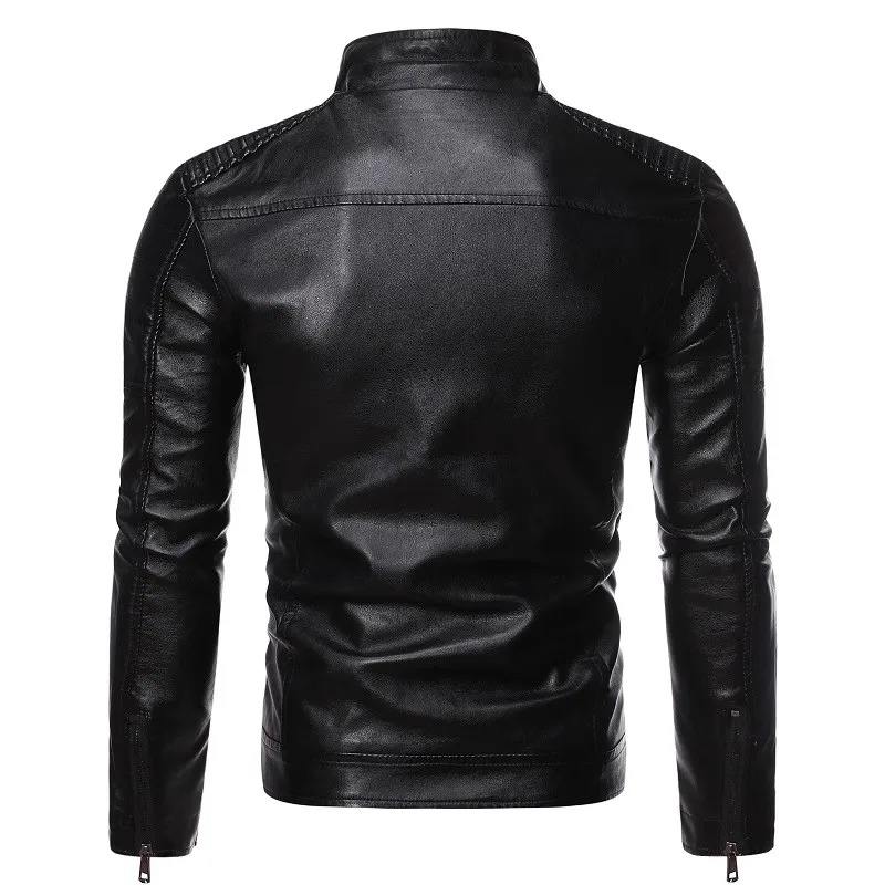 Chaqueta de Cuero para Hombre, Estilo Motero, Cuello Alto, Color Puro, Moda Urbana, para Uso Diario
