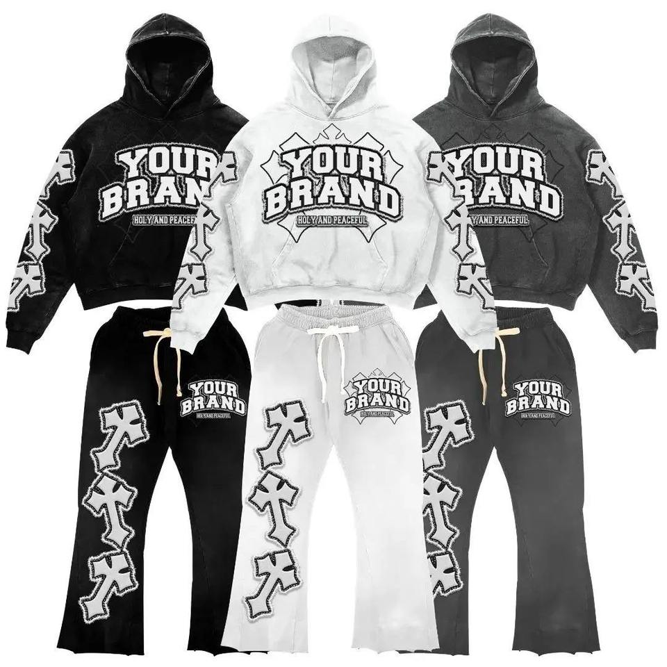 Conjunto de Pantalones y Sudadera Corta Holgada para Hombre, Estilo Acid Wash, 100% Algodón, Pantalones Deportivos Holgados de Invierno